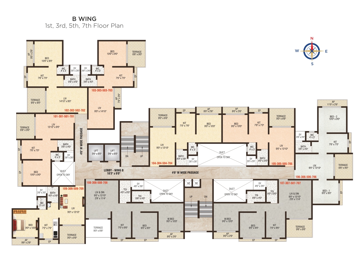 - Anti-skid ceramic flooring for terraces, dry balcony & toilets.